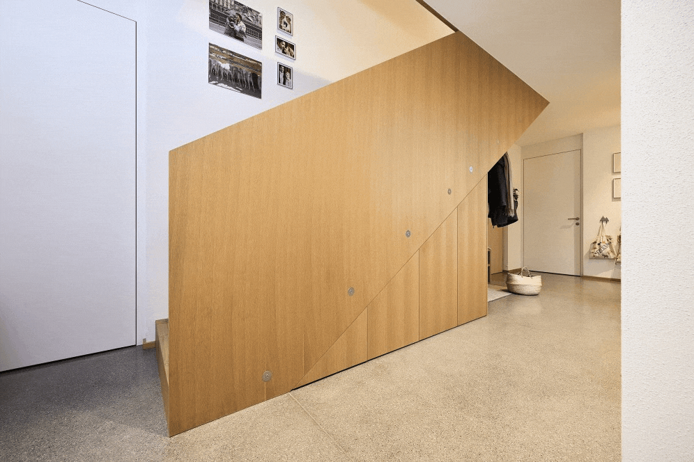 樓梯通道下方的區域也可以搖身一變成為實用美觀的收納空間