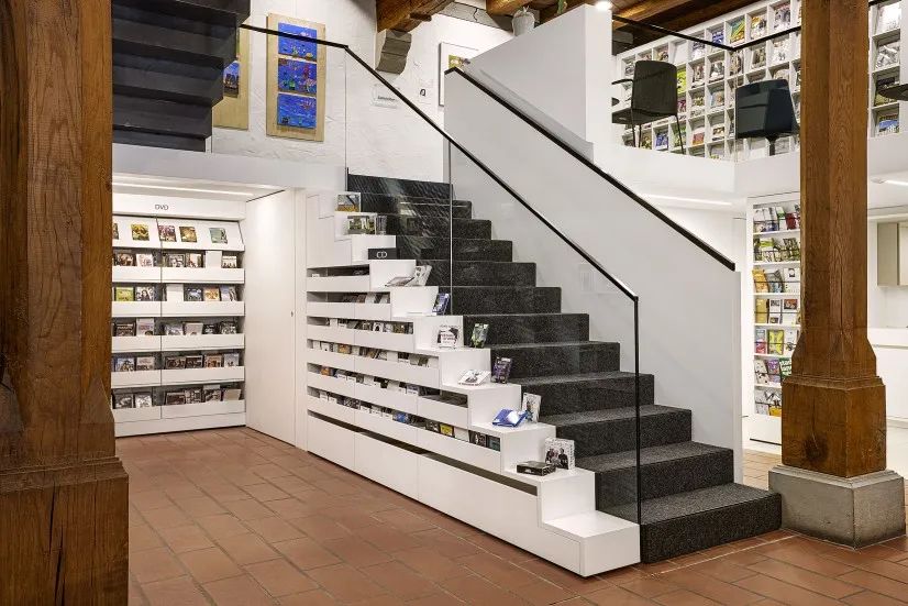 在私人住宅的樓梯下設計一個書櫃也是不錯的主意。